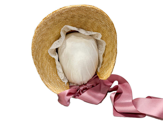 Isabella: Regency Poke Bonnet with ribbons, fabric and lace