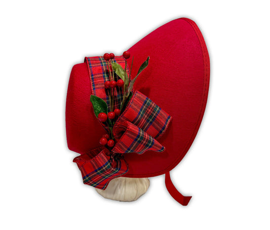 Caroler Style Felt Bonnet Plaid & Poinsettias: Red