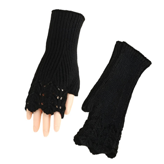 Lacy Winter Knitted Half Mitt Gloves (choose color)
