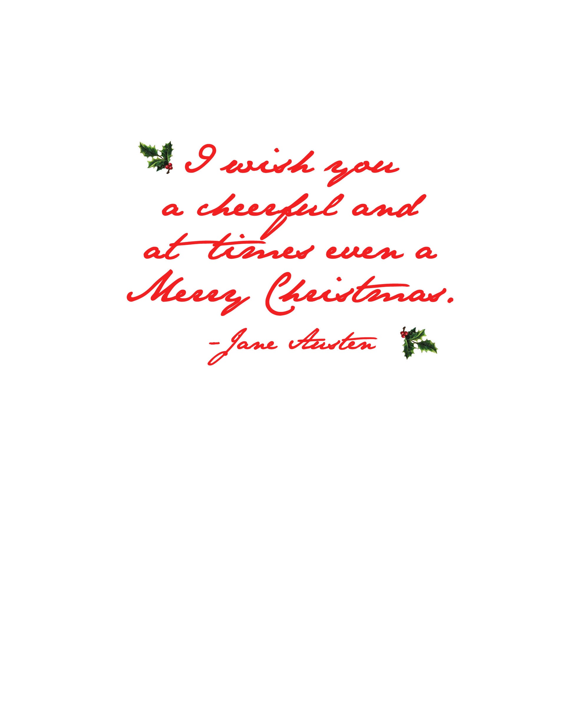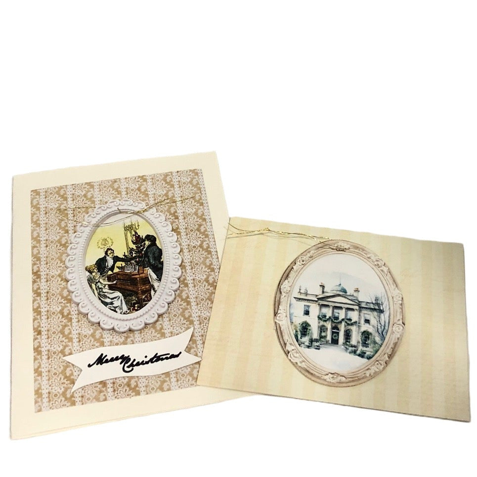 These unique holiday cards feature a detachable Christmas ornament! Each handmade card has a dimensionally framed picture. The two large cards also feature a festive "Merry Christmas" greeting. Inside, a holiday quote from Jane Austen brings festive cheer (interior quote styles vary, but quote is the same). The two smaller cards are blank for your message.