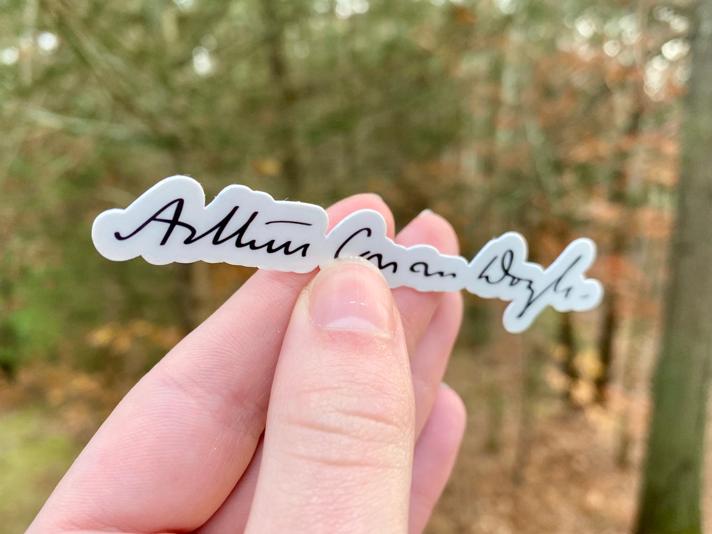 - Sir Arthur Doyle signature sticker measures approximately 3.5” wide x 0.7” tall
