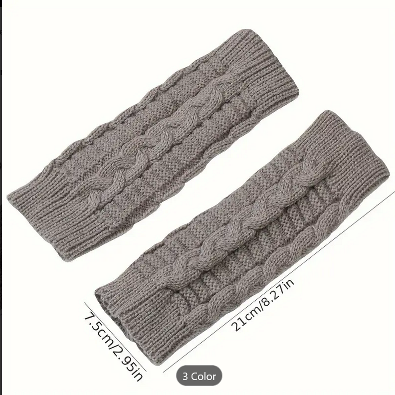 Warm Winter Sweater Knitted Half Mitt Gloves: Ivory